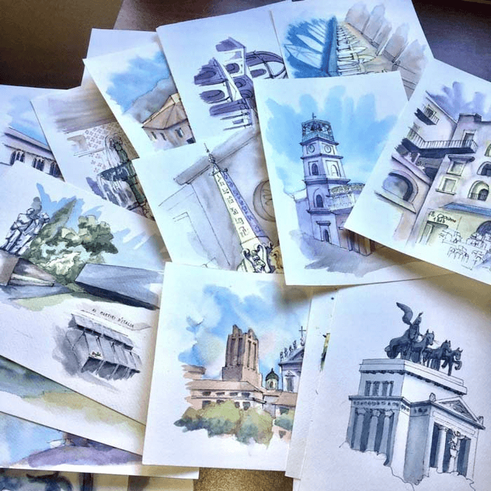 La mia idea è quella di approcciarsi al disegno, all’acquerello e all’Urban Sketching come ad un viaggio, sviluppando un modo di esprimere noi stessi rilassandoci, rallentando e godendoci il processo.