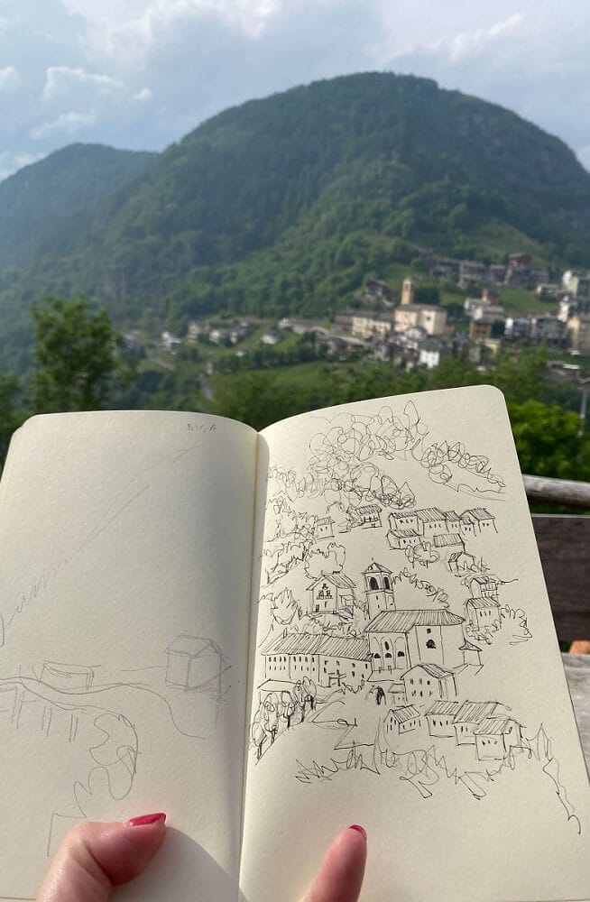 Giorno dopo giorno l’arte è diventata la mia vita e nel 2019 ho mollato tutto per girare in moto l’Italia e disegnarla con il progetto Italia Grand Sketching Tour.